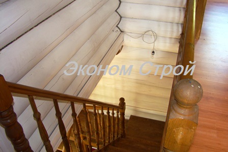 Срок визготовления лестницы с установкой на второй этаж дома из бревна, составил 25 рабочих дней (изготовление на производстве, покраска колерованной морилкой и сверху лаком, монтажные работы).