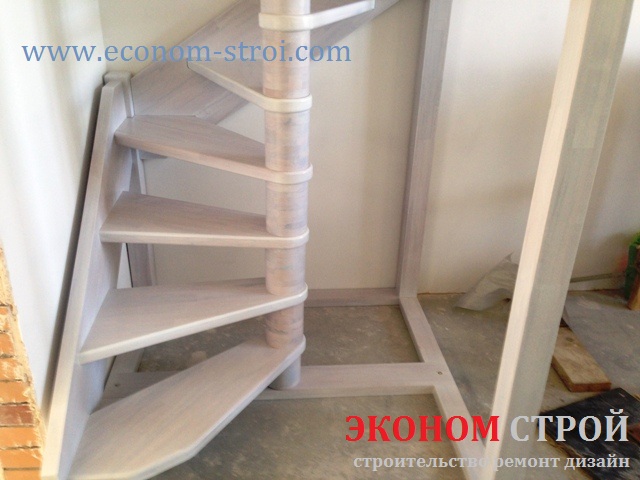 Несущие косоуры сделаны и ступени сделаны из мебельного щита бук, сращенной склейки (сростка). Вся покраска выполнена маслом бормо с колеровкой в светлый цвет, согласно РАЛа предоставленный заказчиком.
