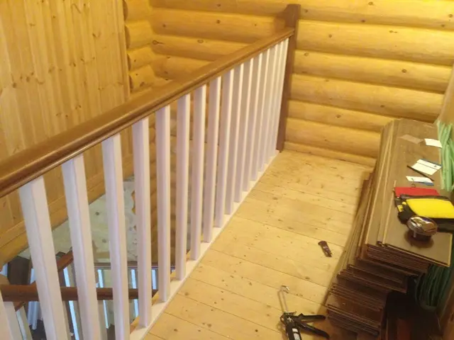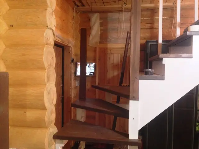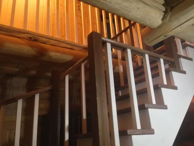 Лестница с площадкой на 2 этаж бревенчатого домасмотреть фото
