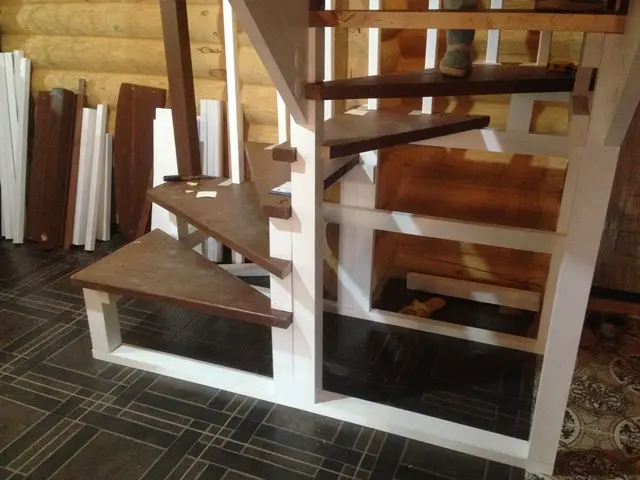 Лестница на второй этаж с забежными ступенямисмотреть фото