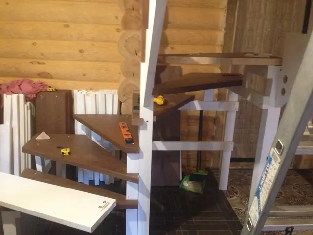Лестница из сосны поворот на 90 градусовсмотреть фото