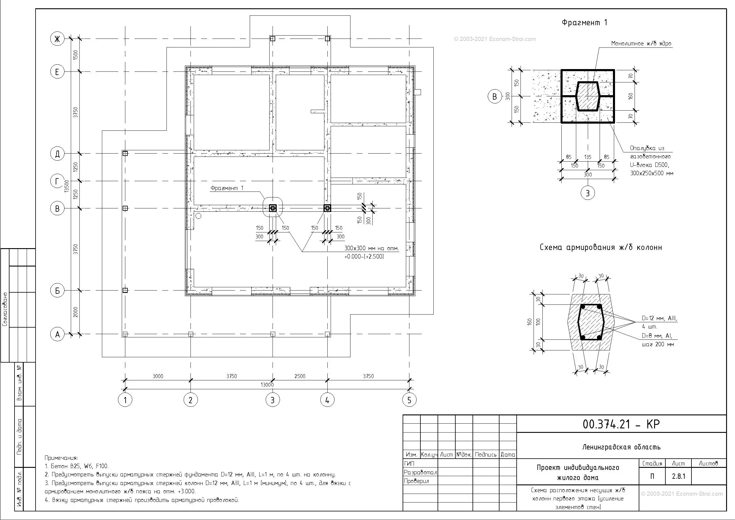 Полный проект (АР Архутектурные решения; КР Конструктивные решения; Ведомость чертежей основного комплекта; Ведомость чертежей основного комплекта; План фундамента | Опалубочный план плит фундамента | Ведомость основных объемов на устройство фундамента | Схема армирования фундамента; Пирог внешней стены; Пирог кровли; Схема расположения несущих ж/б колонн первого этажа (усиление элементов стен); План междуэтажного перекрытия на отм. +3.180; Схема расположения монолитных ж/б поясов; Разбрусовка по оси 1, 2, 3, 4, 5, 6, 7, 8).