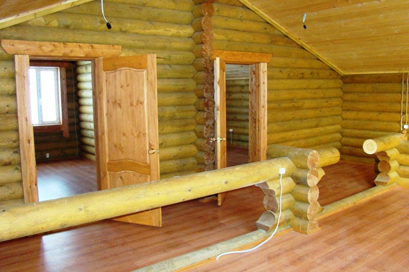 На фото выполненные работы по внутренней отделке деревянного дома из бревна.